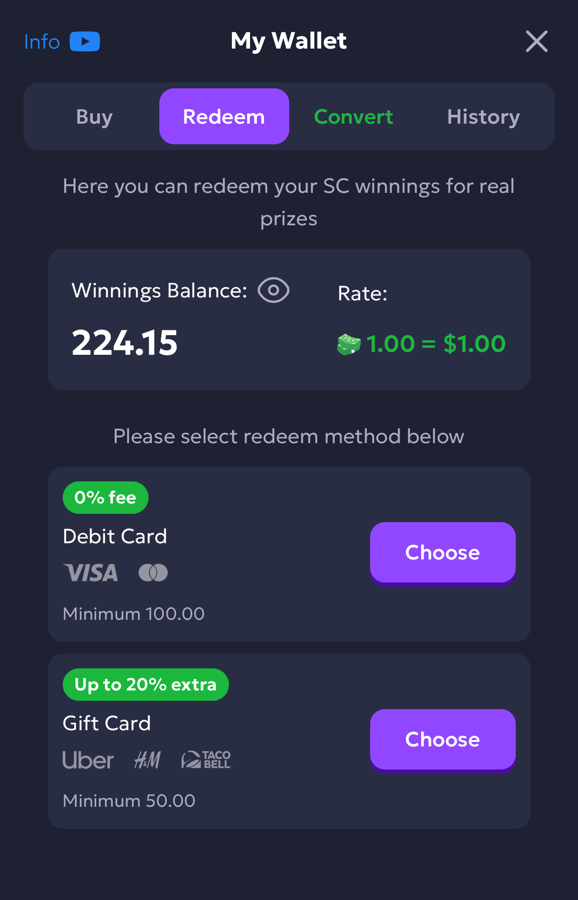 Once you’ve collected enough Sweeps Coins, you can redeem them for real-world prizes. These might include cash, gift cards, or other exciting rewards, depending on the casino’s offerings.